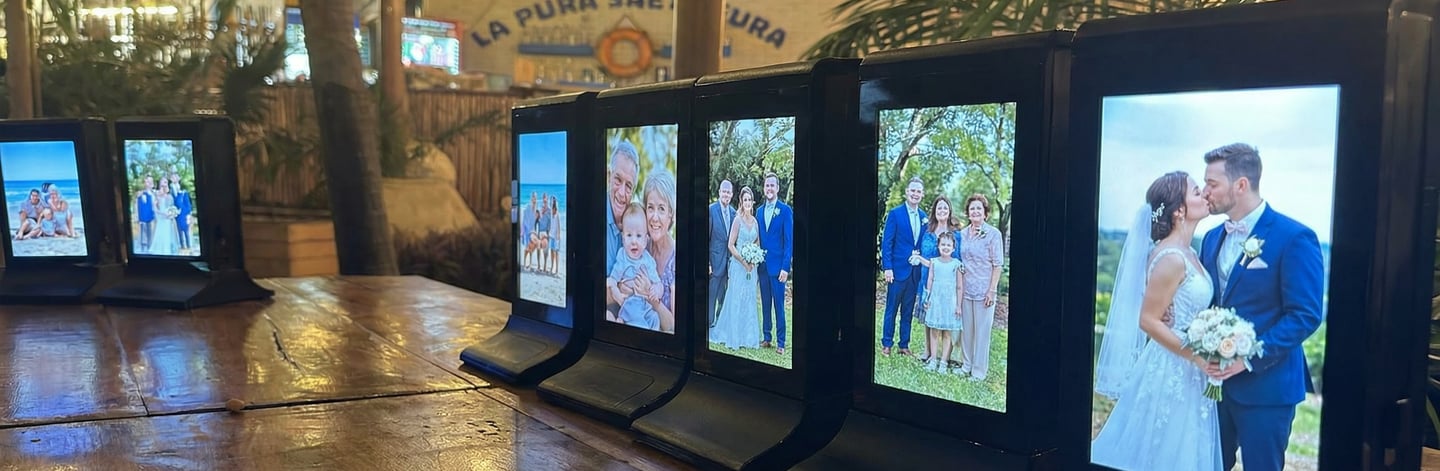 Delight your wedding groups with a new and unique service - a Digital Photo Album on every table, where guests can enjoy photos and short videos of the couple, their families and well-wishers from afar.